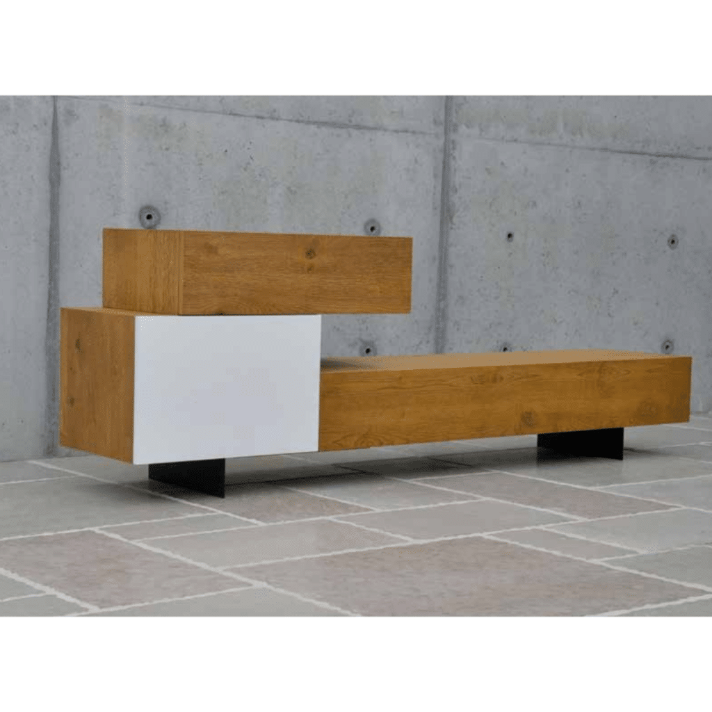 COMODA TV lemn masiv este soluția ideală pentru un living modern și elegant, combinând durabilitatea lemnului masiv cu designul contemporan. Cu un finisaj lemn natural și picioare metalice rezistente, această comodă TV adaugă un plus de rafinament și funcționalitate spațiului tău. Disponibilă în nuanțe calde de stejar natur, cu opțiunea de ușă albă, se integrează perfect în orice decor modern.