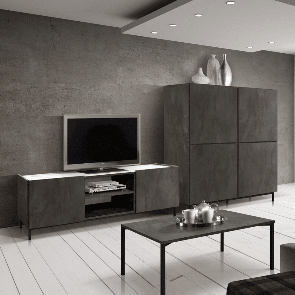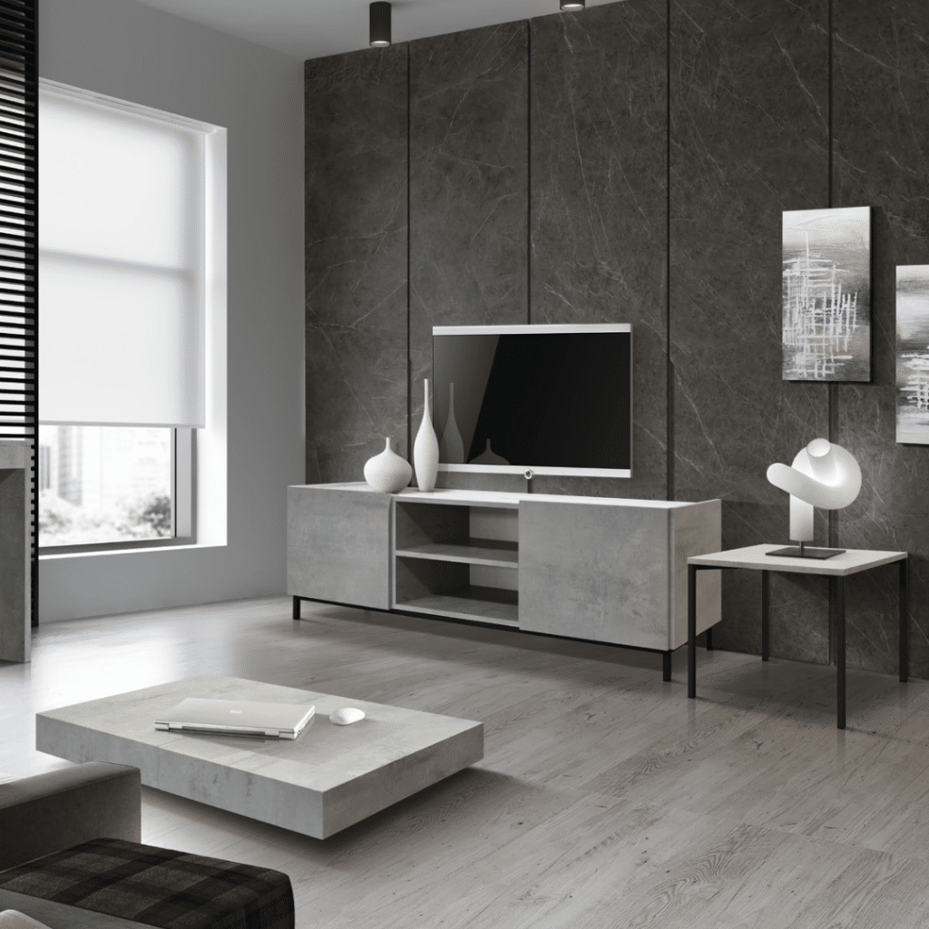 Comoda TV Linda cu picior metalic este soluția ideală pentru orice living modern, combinând funcționalitatea cu un design elegant. Realizată din PAL melaminat de înaltă calitate, această comodă se remarcă prin cele trei uși cu sistem de amortizare, perfecte pentru depozitarea echipamentelor media. Disponibilă în finisaje sofisticate precum gri ciment și oțel oxidat, cu blat alb statuario, aduce un plus de rafinament oricărui spațiu.