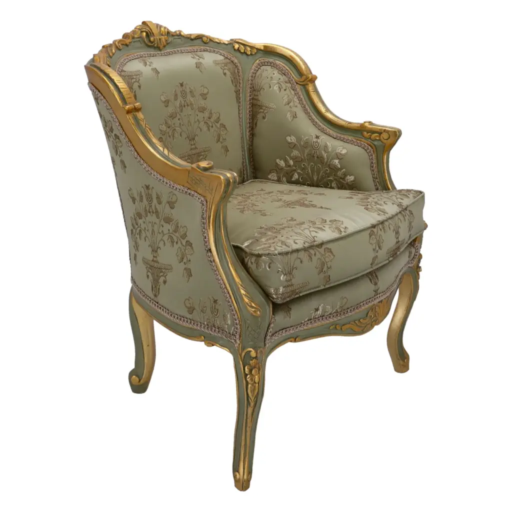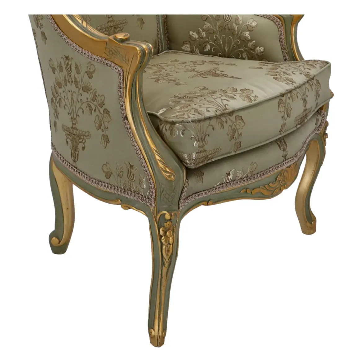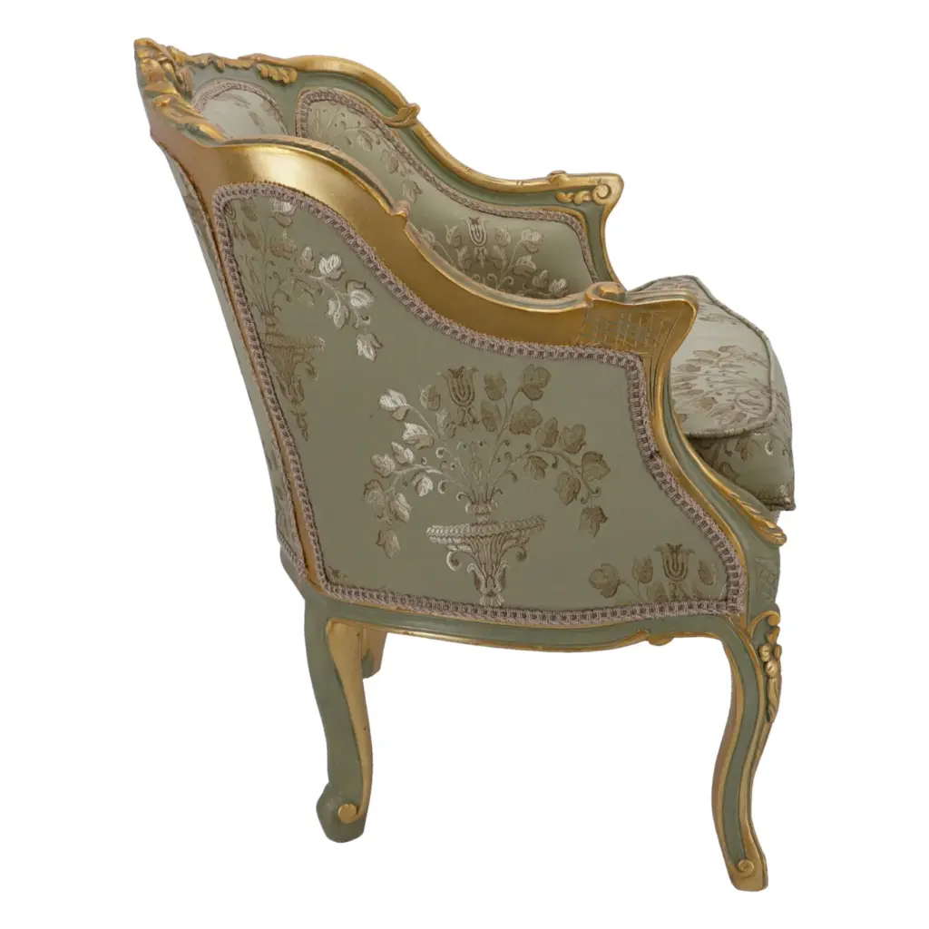 Fotoliu baroc din lemn sculptat, tapiterie damasc, finisaje aurii Design clasic elegant