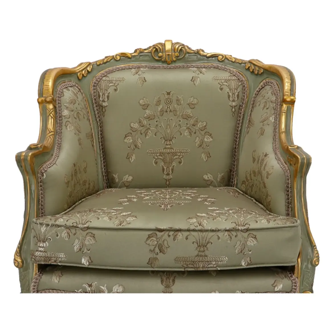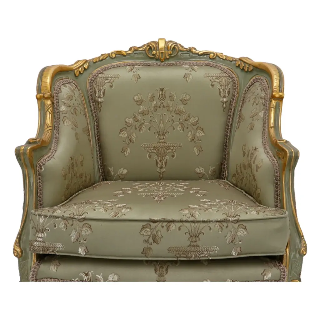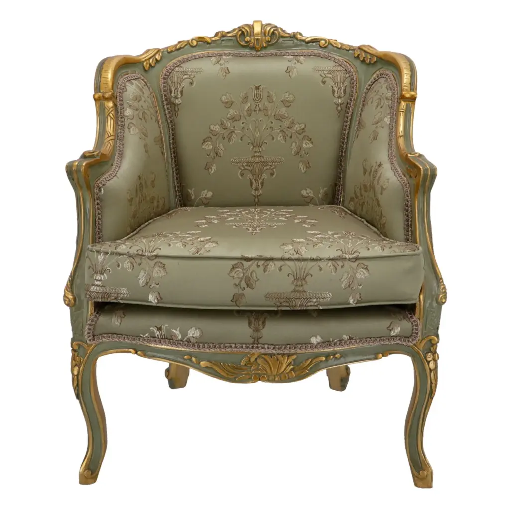 Fotoliu baroc din lemn sculptat, tapiterie damasc, finisaje aurii Design clasic elegant
