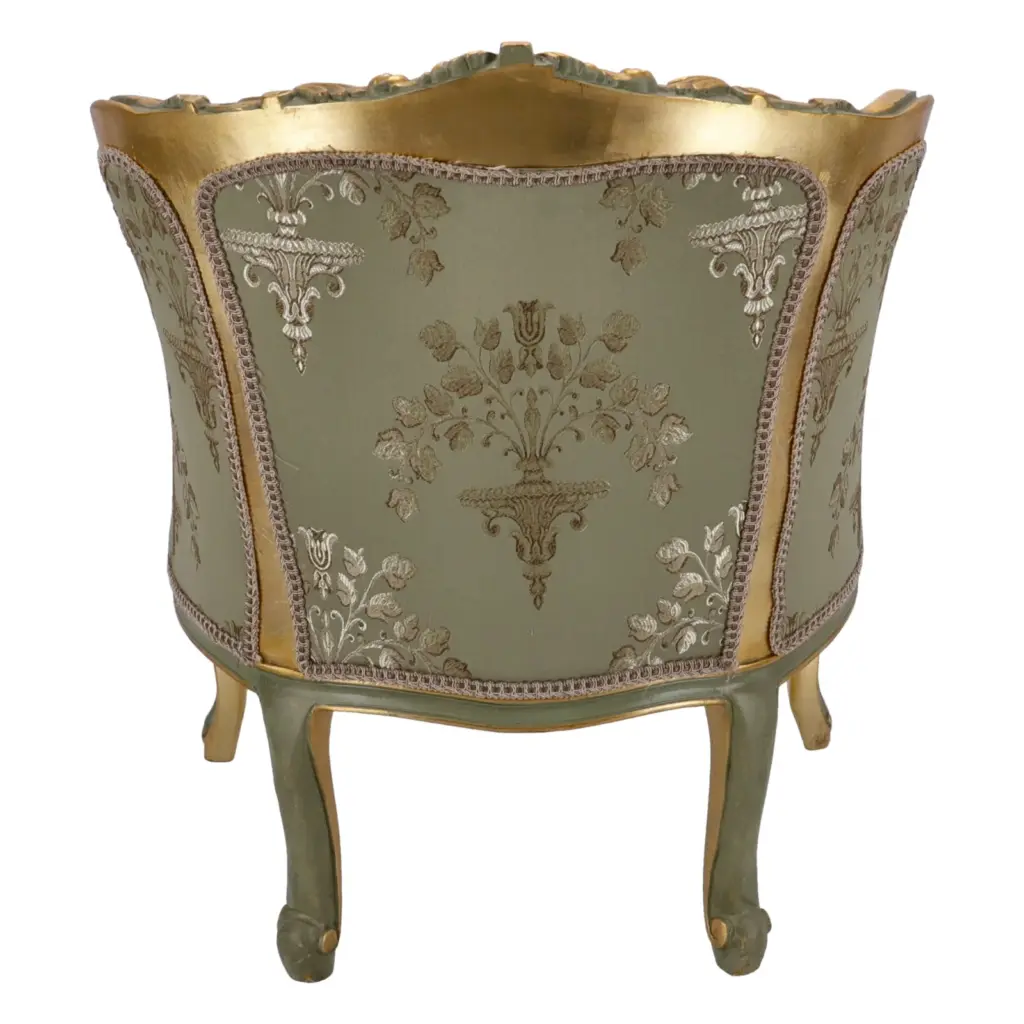 Fotoliu baroc din lemn sculptat cu tapiterie damasc și finisaje aurii, o piesă de mobilier care redefinește eleganța clasică în orice spațiu. Acest fotoliu deosebit, realizat manual din lemn masiv sculptat, se integrează perfect în decoruri rafinate, oferind un aer regal și un plus de stil în living, birou sau spații comerciale. Designul său sofisticat și materialele premium îl transformă într-un element central al oricărui interior clasic elegant.
