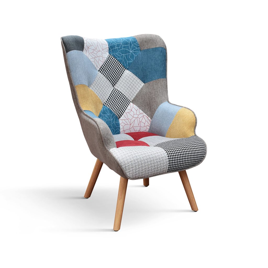 Fotoliul Patchwork cu structură metalică este alegerea ideală pentru un plus de stil și confort în orice living modern. Tapitat cu o țesătură multicoloră patchwork, acest fotoliu adaugă un accent vibrant și original spațiului tău. Designul său ergonomic și dimensiunile generoase îl transformă într-un fotoliu foarte comod, perfect pentru momentele de relaxare.