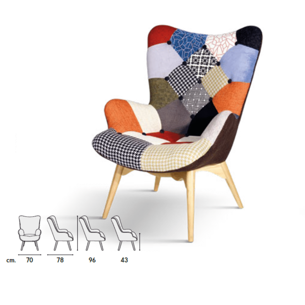 FOTOLIU PATCHWORK RELAX este alegerea ideală pentru orice living modern, oferind un plus de confort și stil prin designul său unic cu tapiterie patchwork. Realizat pe o structură solidă din lemn, acest fotoliu din categoria canapele și fotolii combină estetica vibrantă cu funcționalitatea, fiind disponibil în două tonalități de nuanțe ce se potrivesc perfect oricărui decor. Dimensiunile generoase îl transformă într-un spațiu perfect pentru momentele de relaxare.