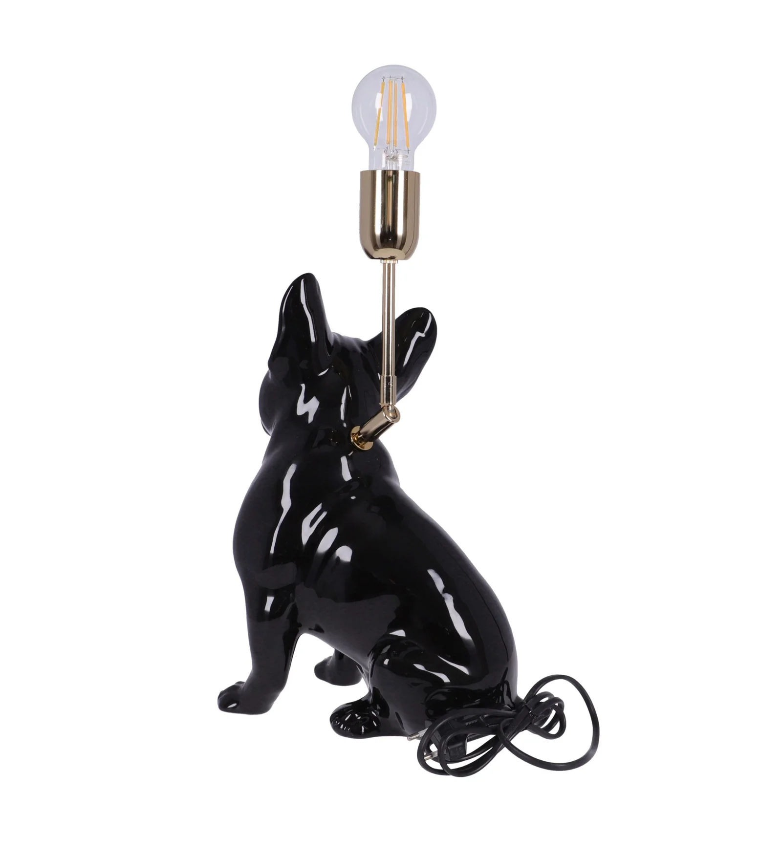 Lampa ceramica Bulldog Negru lucios h 35 cm