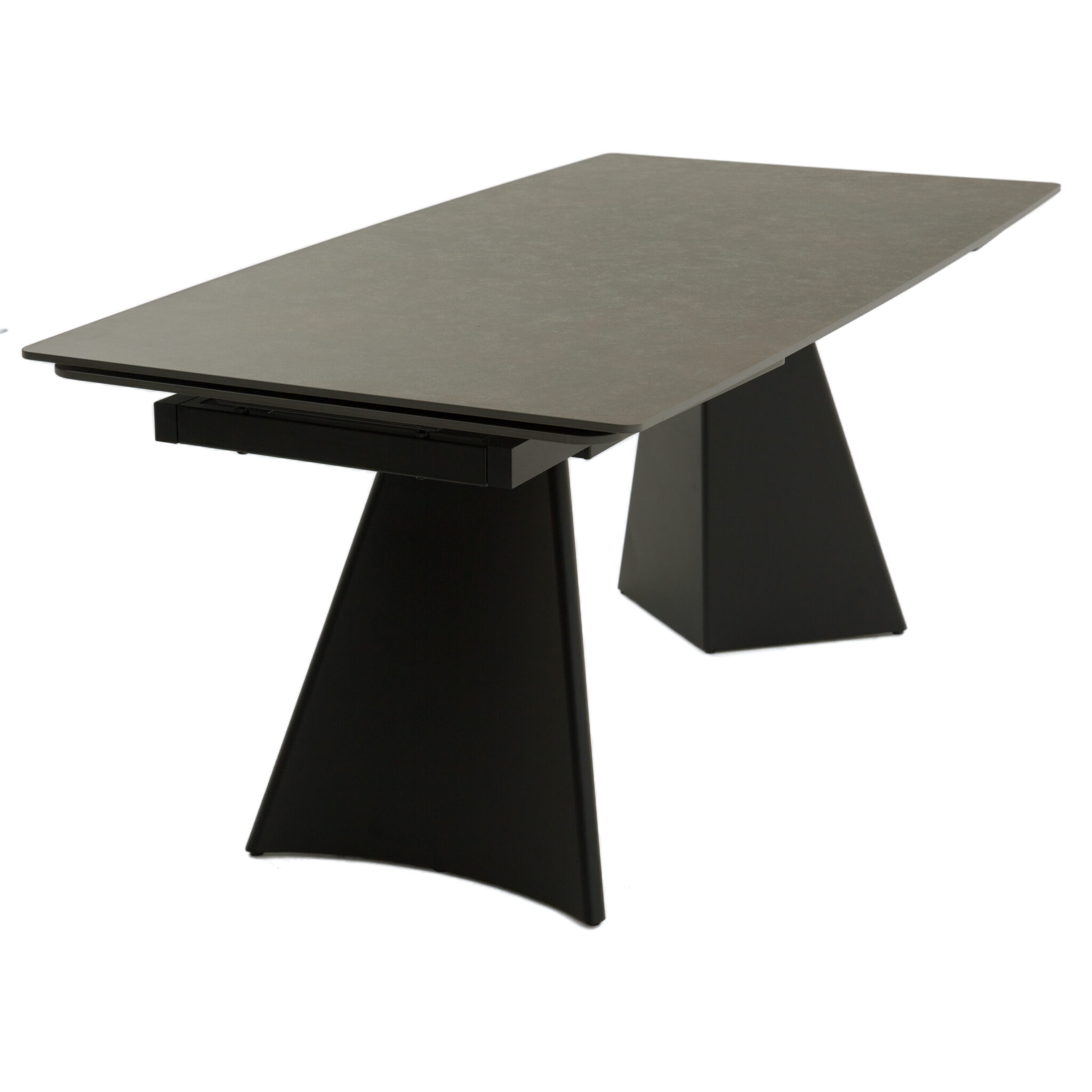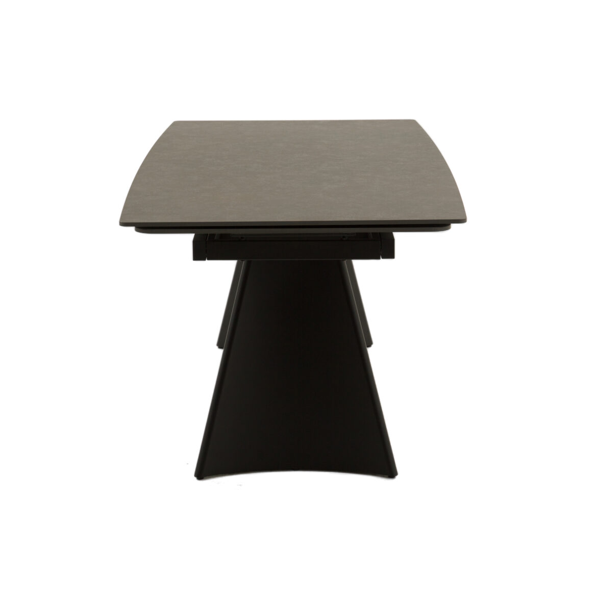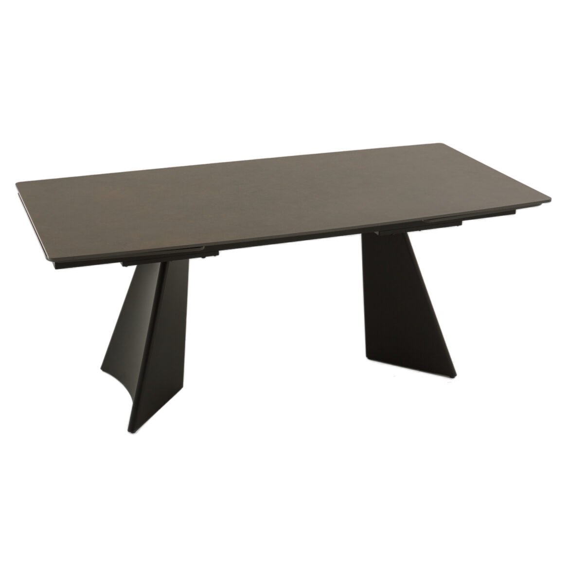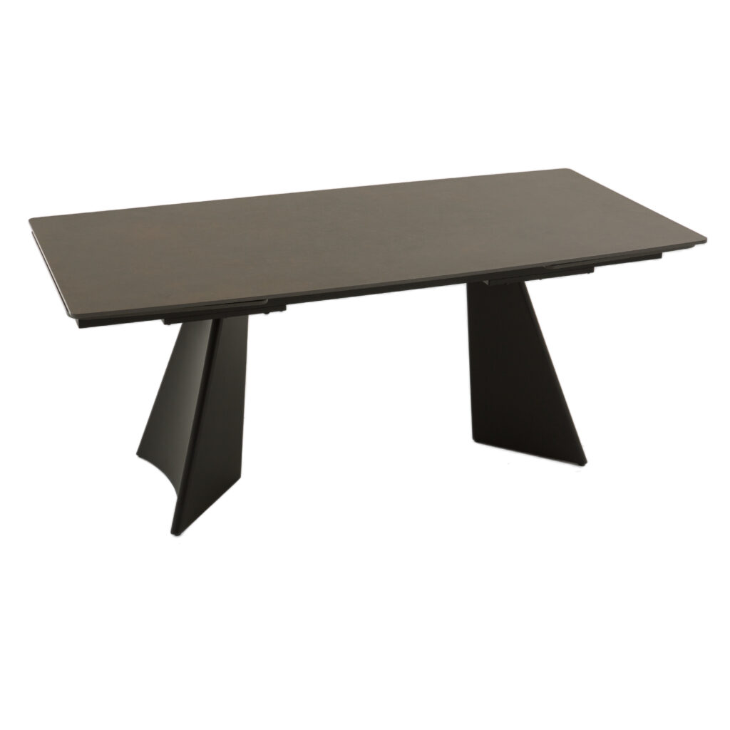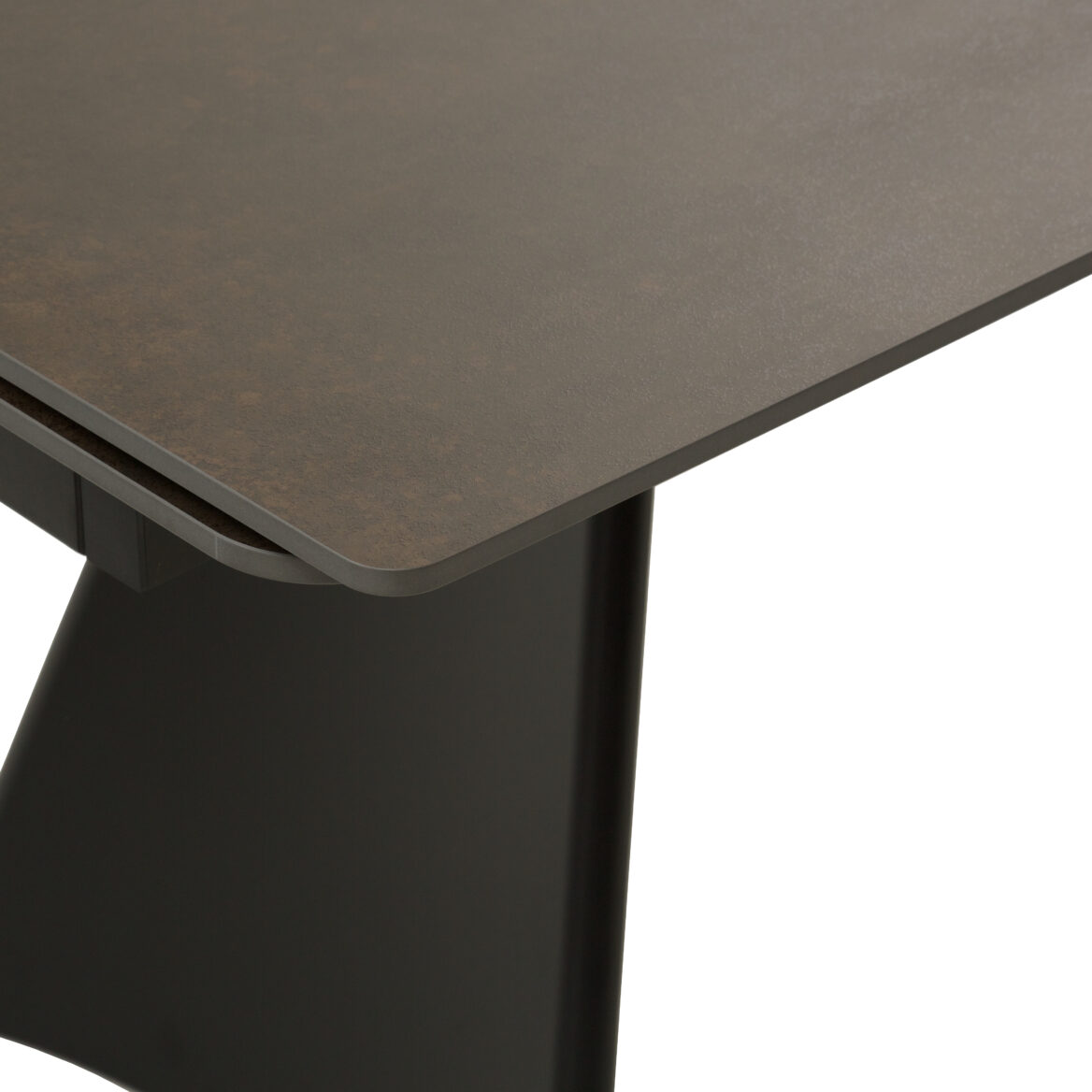 Masa COLLE cu blat dreptunghiular din ceramică mată, în nuanțe elegante de maro cu insertii moderne, este alegerea perfectă pentru orice spațiu modern. Designul său sofisticat, completat de picioarele metalice negre, aduce un plus de stabilitate și rafinament în zona de dining.
