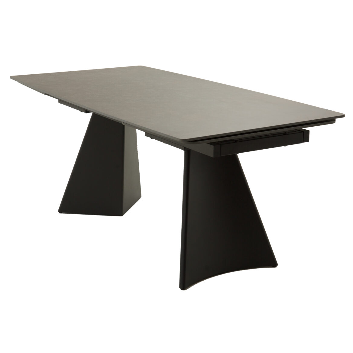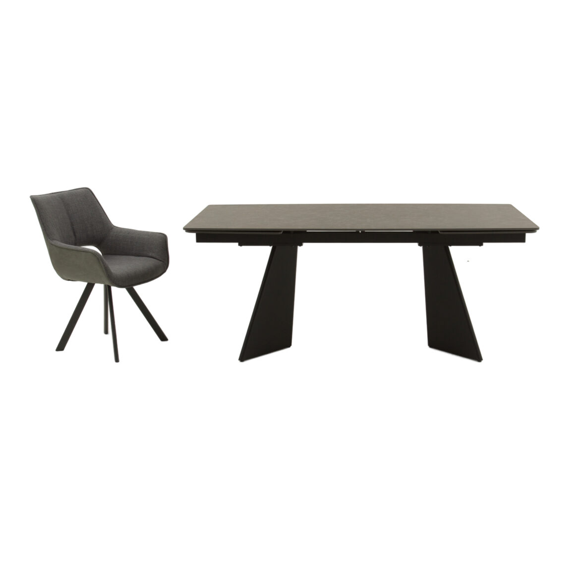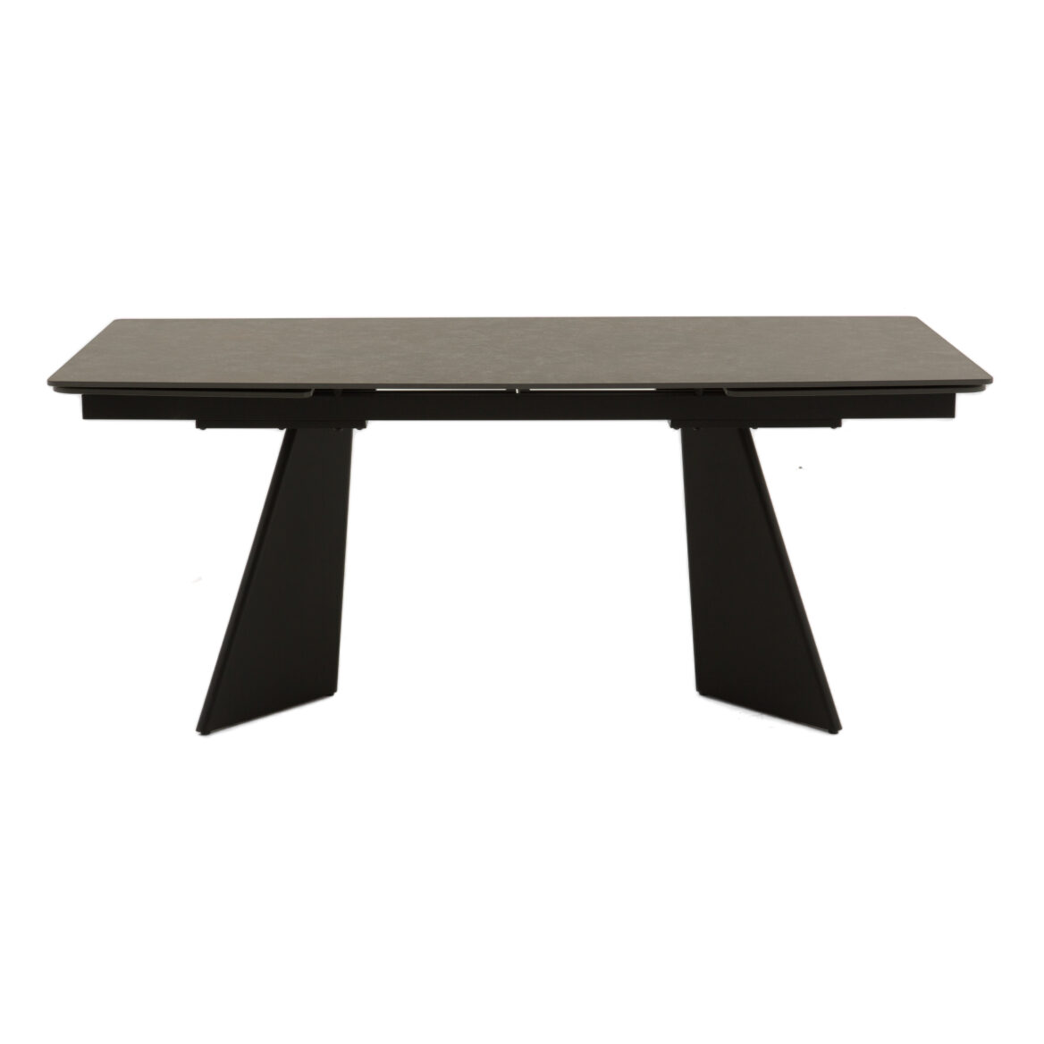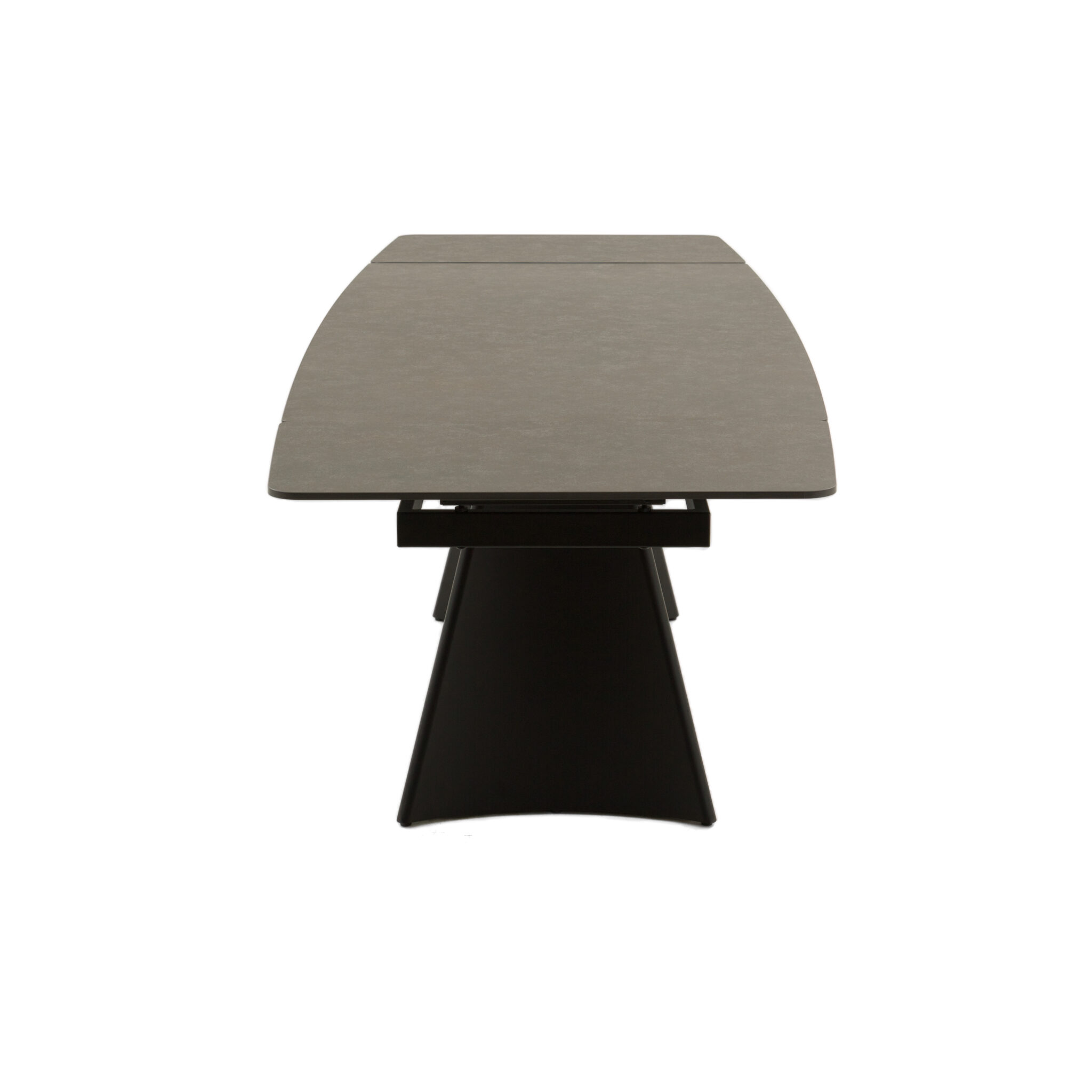Masa COLLE cu blat dreptunghiular din ceramică mată, în nuanțe elegante de maro cu insertii moderne, este alegerea perfectă pentru orice spațiu modern. Designul său sofisticat, completat de picioarele metalice negre, aduce un plus de stabilitate și rafinament în zona de dining.