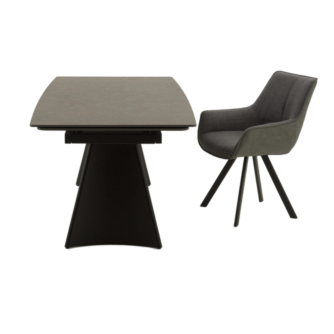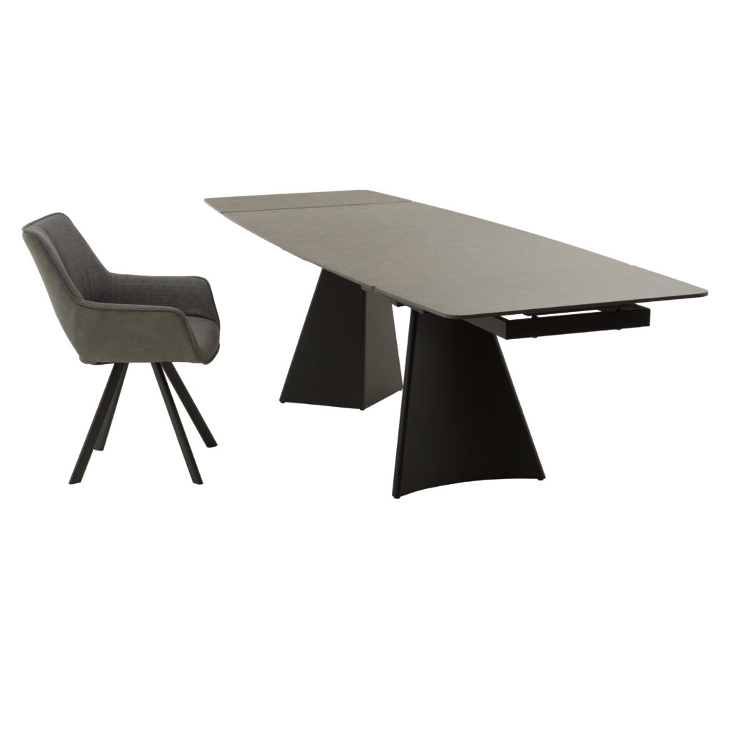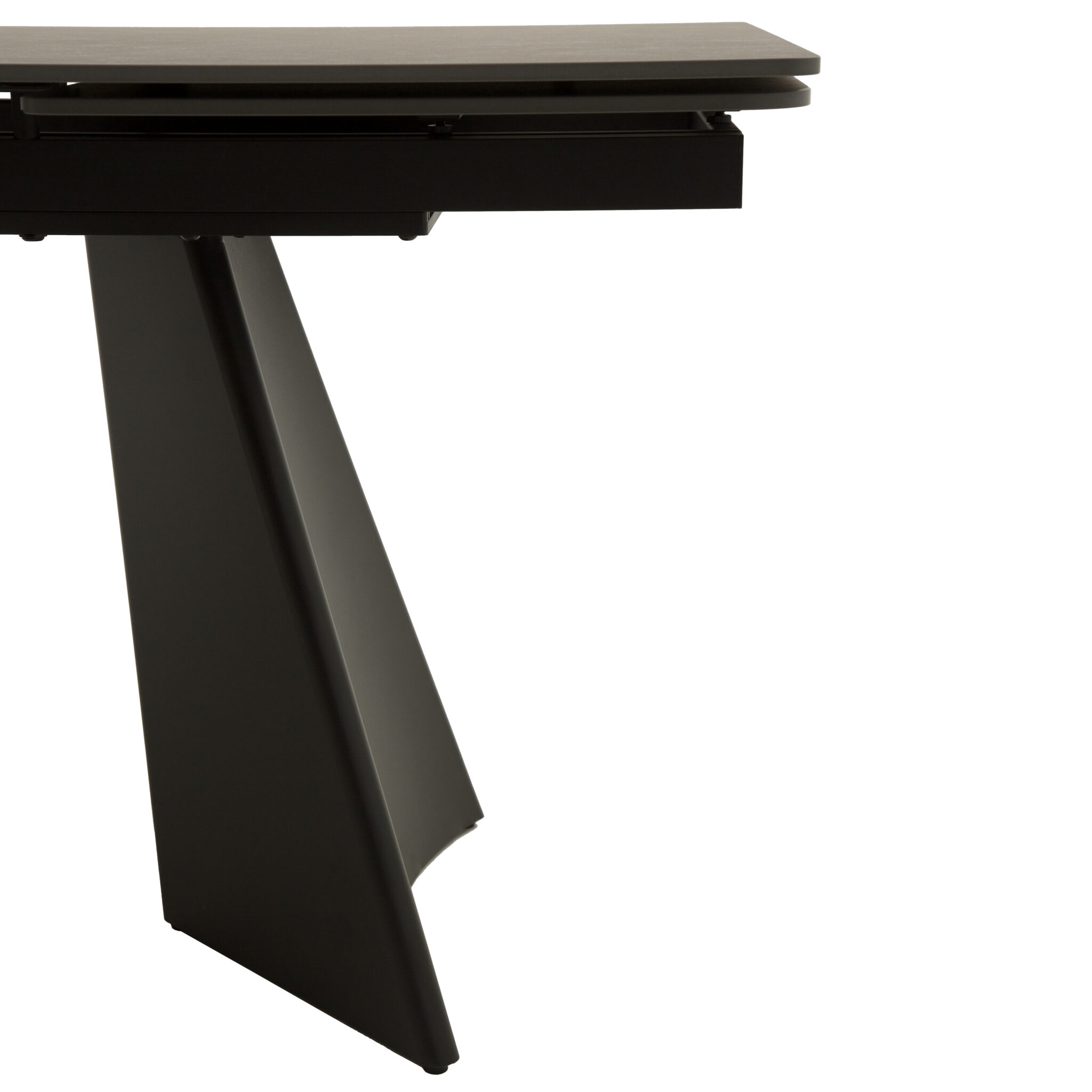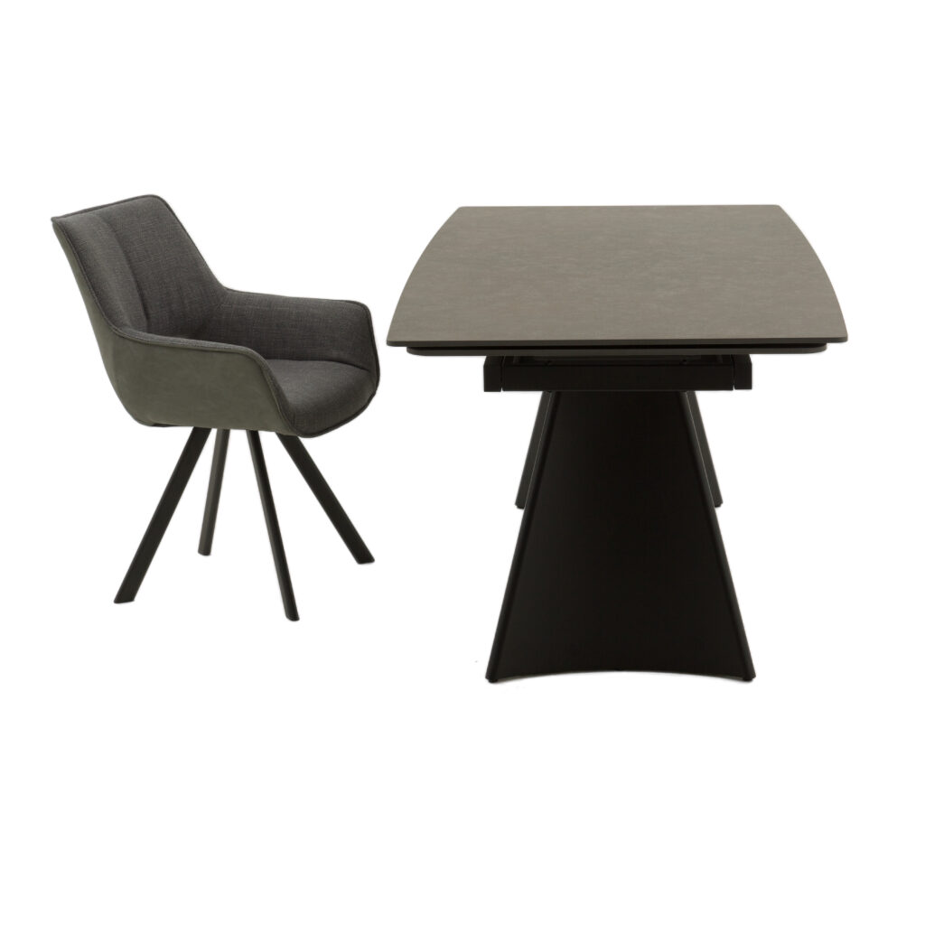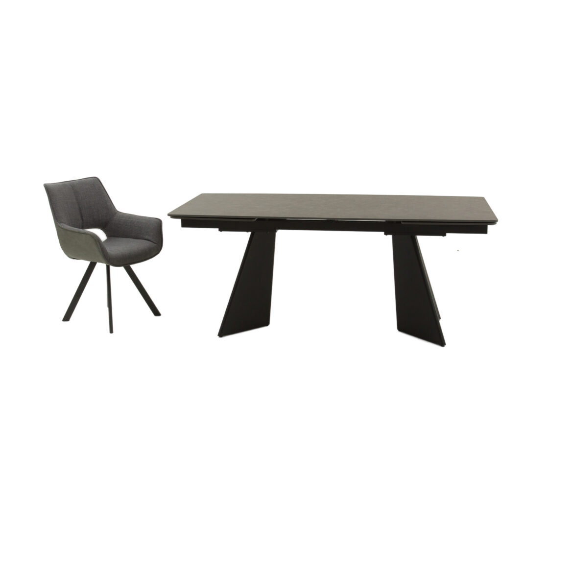 Masa COLLE cu blat dreptunghiular din ceramică mată, în nuanțe elegante de maro cu insertii moderne, este alegerea perfectă pentru orice spațiu modern. Designul său sofisticat, completat de picioarele metalice negre, aduce un plus de stabilitate și rafinament în zona de dining.