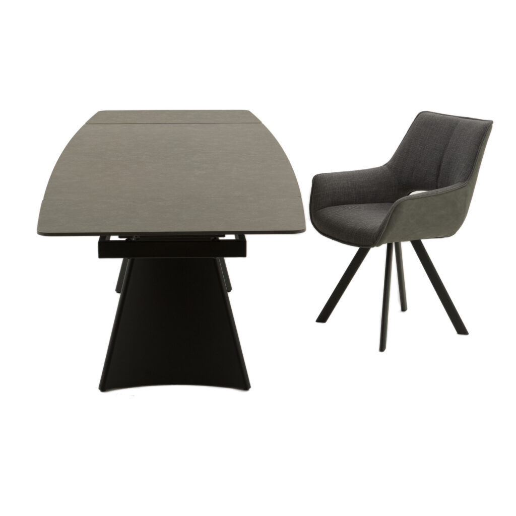 Extensibilă și practică, oferă flexibilitate datorită celor două extensii laterale de 50 cm care pot mări lungimea până la 280 cm, asigurând confort pentru până la 12 persoane.