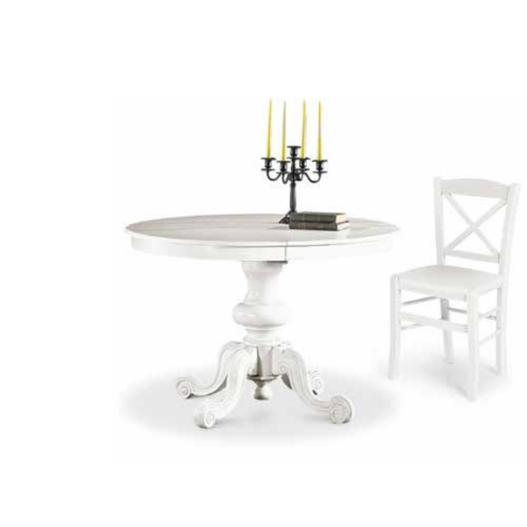 Masa elegantă rotundă Bellaro este soluția perfectă pentru cei care caută un mobilier personalizat ce îmbină funcționalitatea cu designul rafinat. Cu un blat din MDF și o bază robustă din lemn de fag, această masă extensibilă devine piesa centrală ideală pentru orice sufragerie sau bucătărie cochetă. Culoarea albă adaugă un plus de luminozitate și stil, completând armonios orice decor modern.