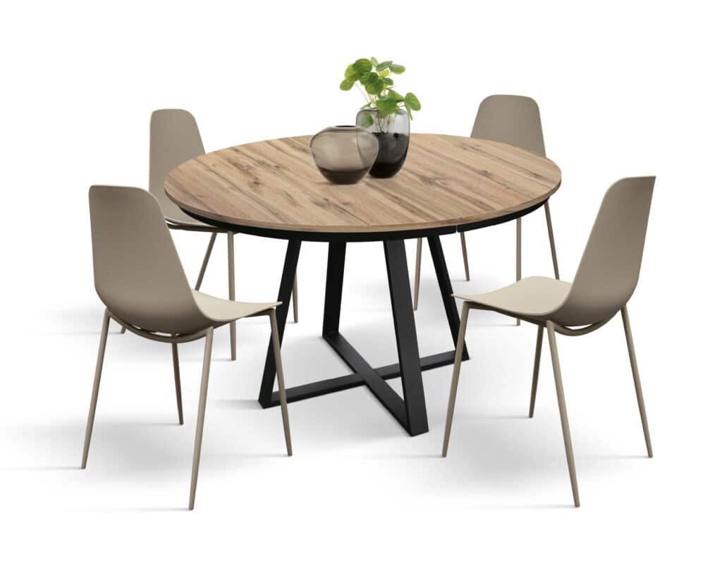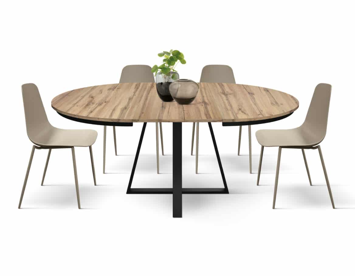 Această masă rotundă extensibilă oferă confort și versatilitate, fiind ideală pentru întâlniri intime sau mese mai numeroase, grație extensiei centrale ce mărește suprafața până la 170 cm. Adaptabilă și practică, Masa Melania se integrează armonios în orice decor, facilitând momente memorabile alături de familie și prieteni. Este soluția perfectă pentru cei care caută o masă de dining cu design rafinat și funcționalitate extinsă.
