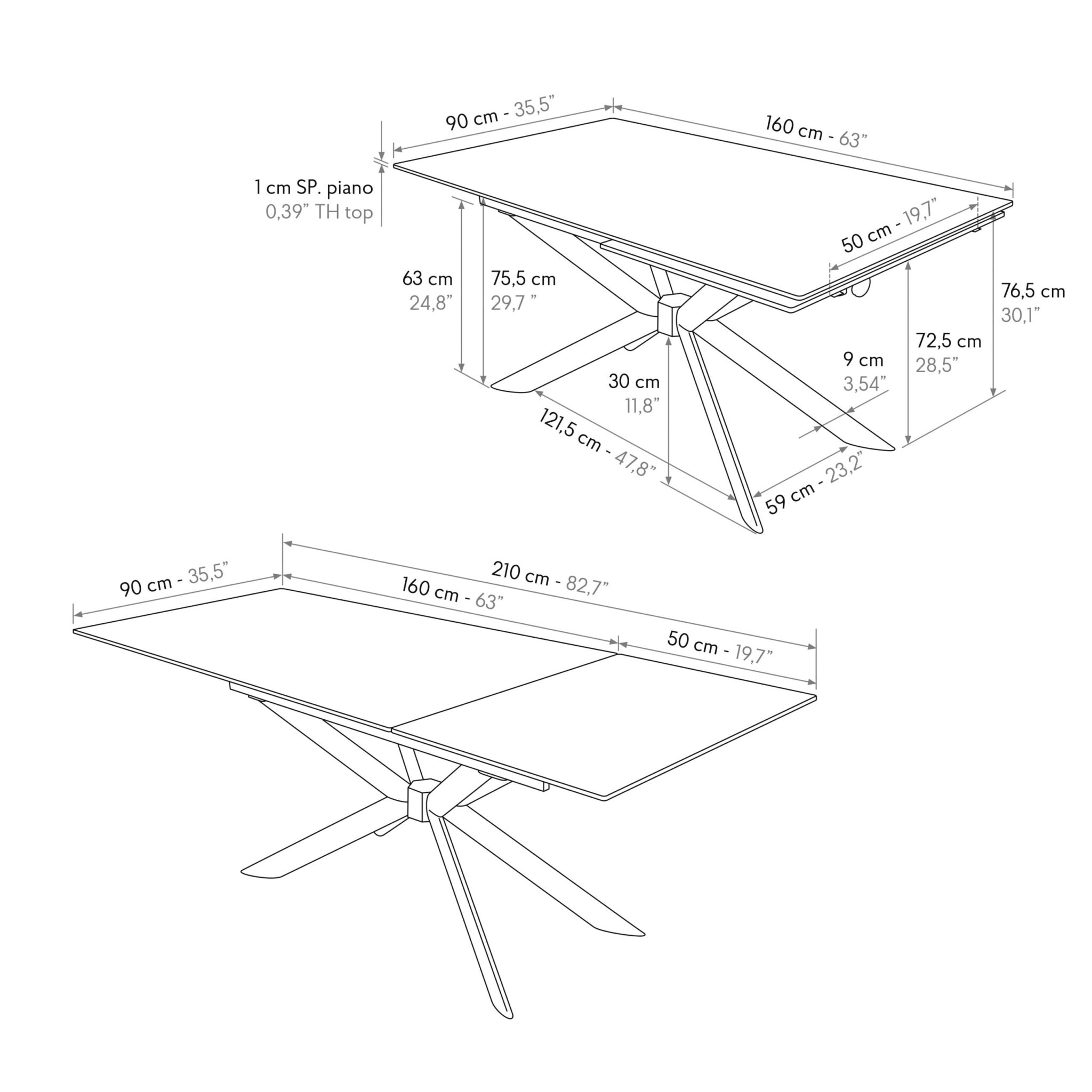 - 210 x 90 x h 76 cm (cu o extensie)