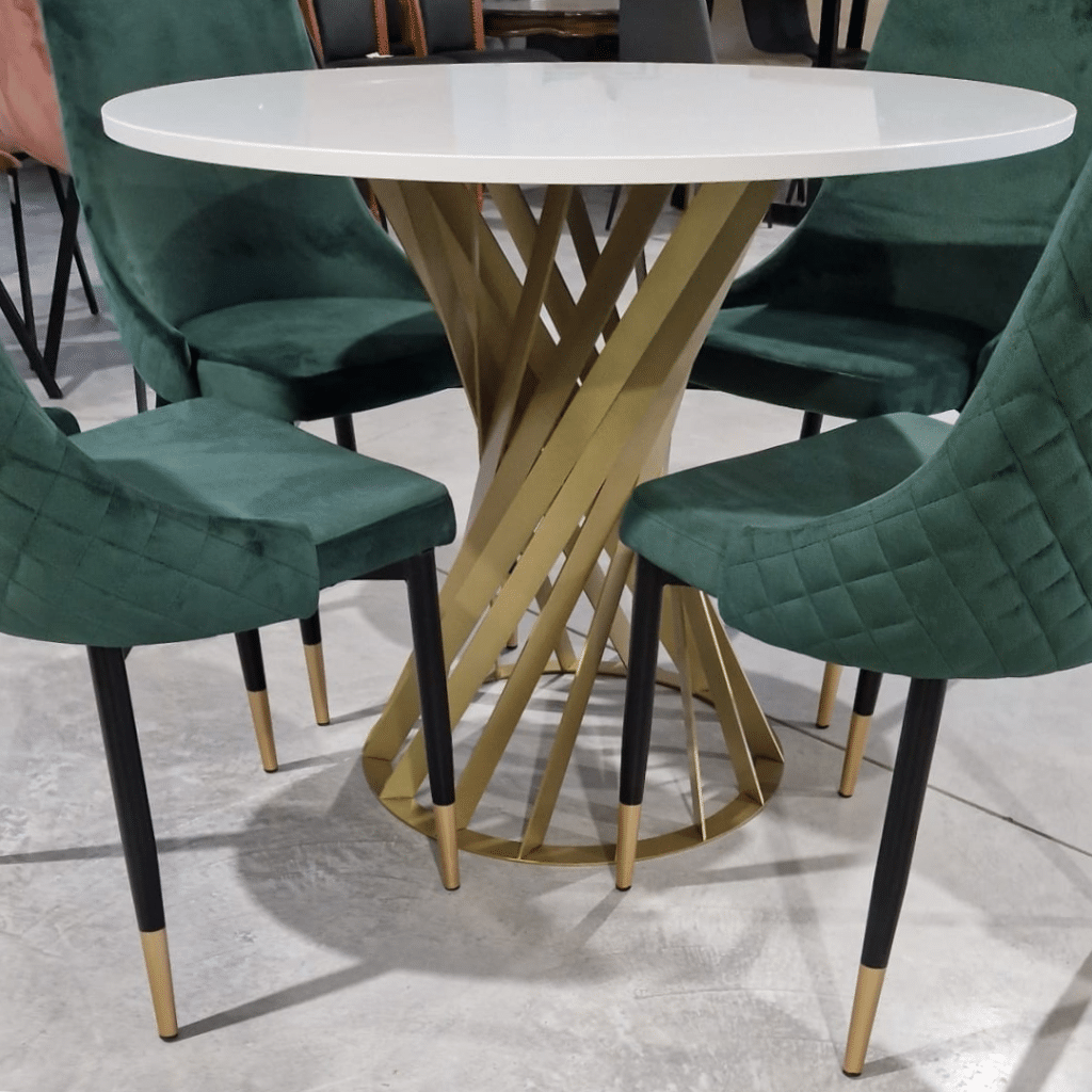Masa Tulipan cu picior metalic este alegerea ideală pentru un dining modern și elegant. Cu un blat MDF alb lucios și un picior metalic finisat auriu, această masă adaugă un plus de rafinament oricărui spațiu. Diametrul de 100 cm oferă confort și funcționalitate, fiind perfectă pentru întâlniri în familie sau cine cu prietenii.