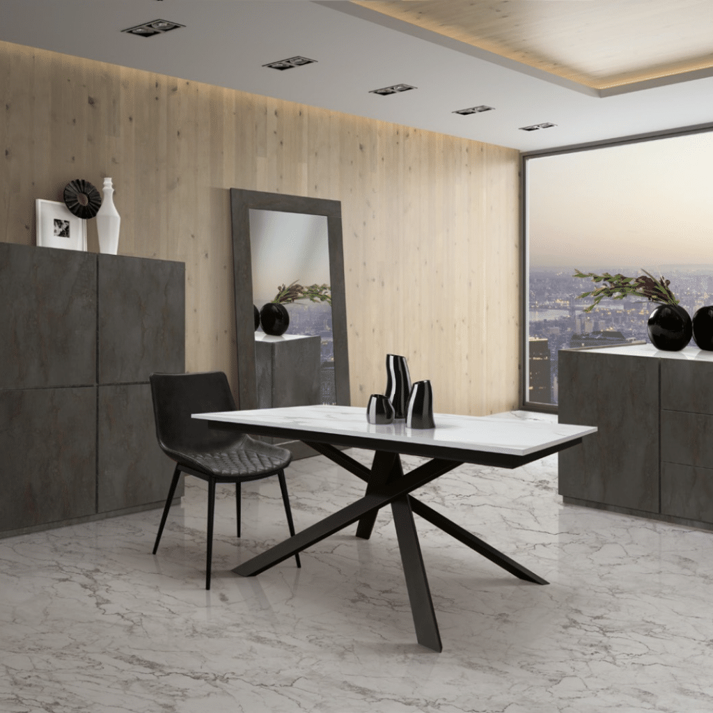 Masa Tiglio, blat extensibil pal laminat, picior metalic