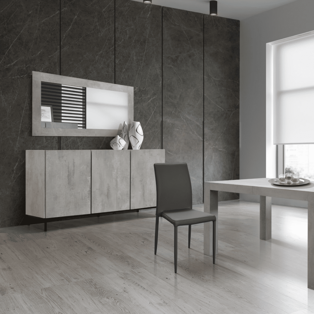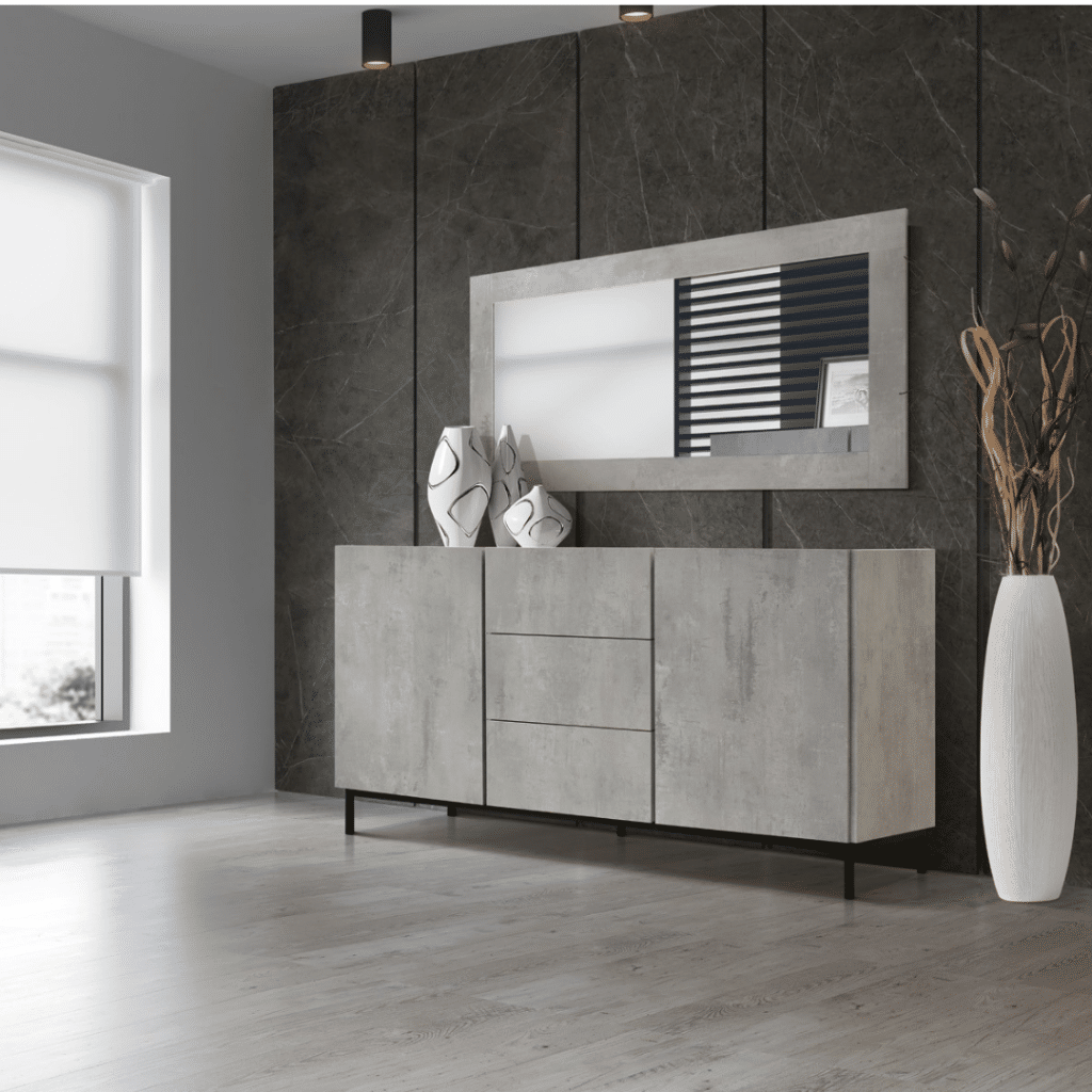 Această oglindă nu doar că reflectă imaginea cu claritate, dar transformă vizual spațiul, făcându-l să pară mai aerisit și mai primitor. Rama durabilă din PAL melaminat asigură rezistență în timp, iar finisajul în gri ciment aduce un aer contemporan și sofisticat. Este o alegere excelentă pentru cei care doresc să combine utilul cu esteticul într-un mod elegant și practic.