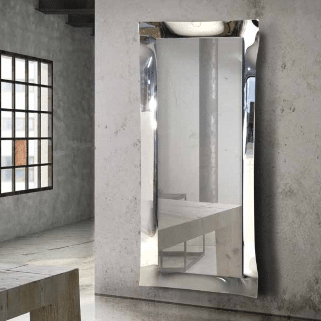 Oglinda Waves este un accesoriu deosebit pentru orice spațiu, combinând eleganța unei rame din sticlă cu un suport metalic robust și modern. Designul dreptunghiular și nuanțele rafinate de bronz fumé și argintiu adaugă un plus de stil și rafinament în decorul casei sau al biroului. Această oglindă decorativă este ideală pentru cei care caută un element funcțional și estetic în același timp.