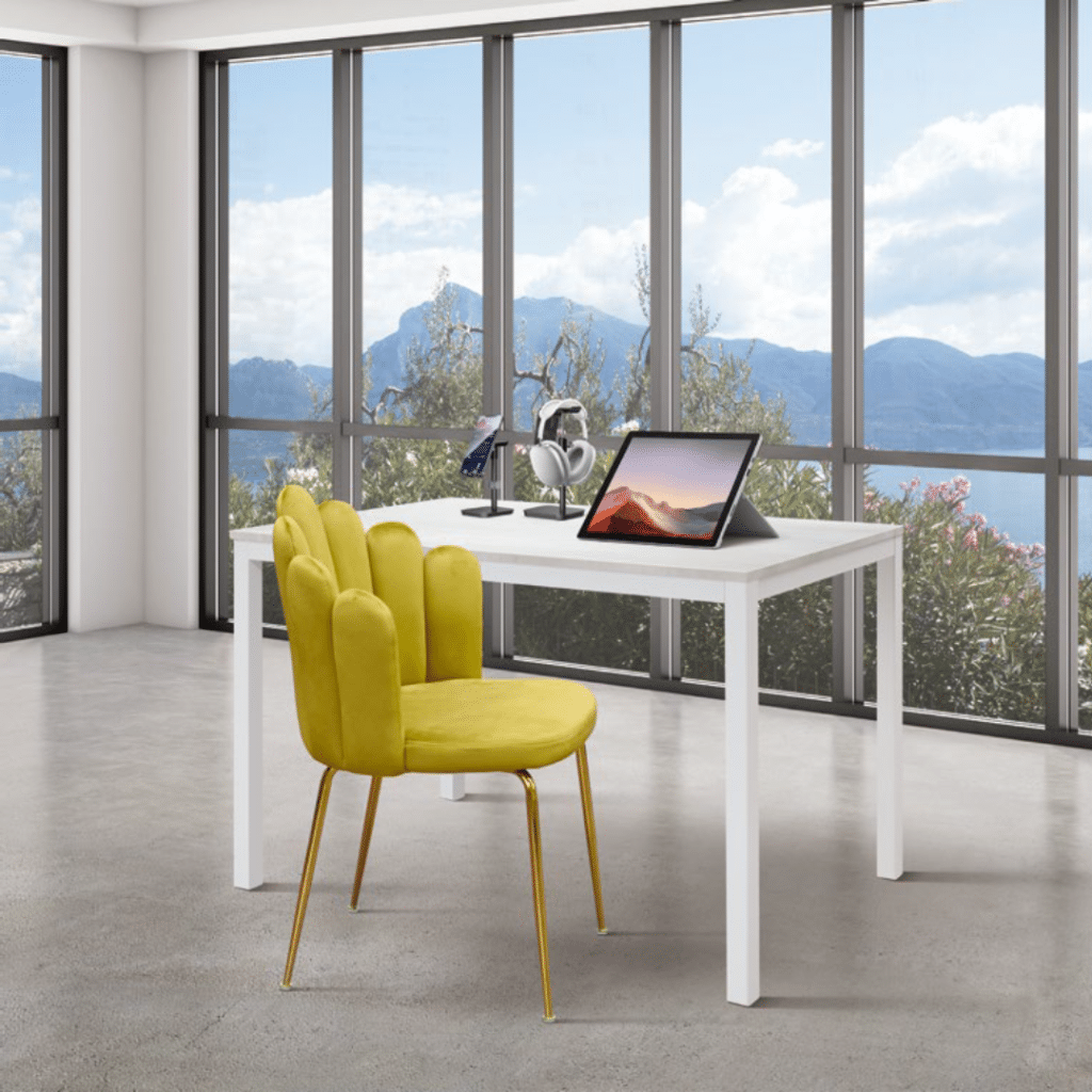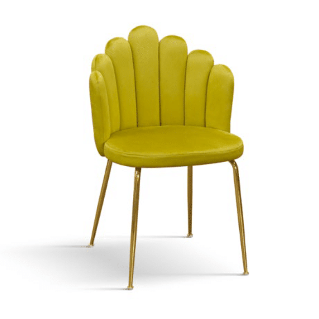Scaunul tapițat Panna este alegerea perfectă pentru cei care caută un mobilier elegant și confortabil. Cu o structură metalică aurie robustă și o tapițerie din catifea fină, acest scaun adaugă un plus de rafinament oricărui spațiu interior. Disponibil în culori vibrante precum bej, verde smarald, galben și bordo, scaunul Panna este ideal pentru living, dining sau birou.