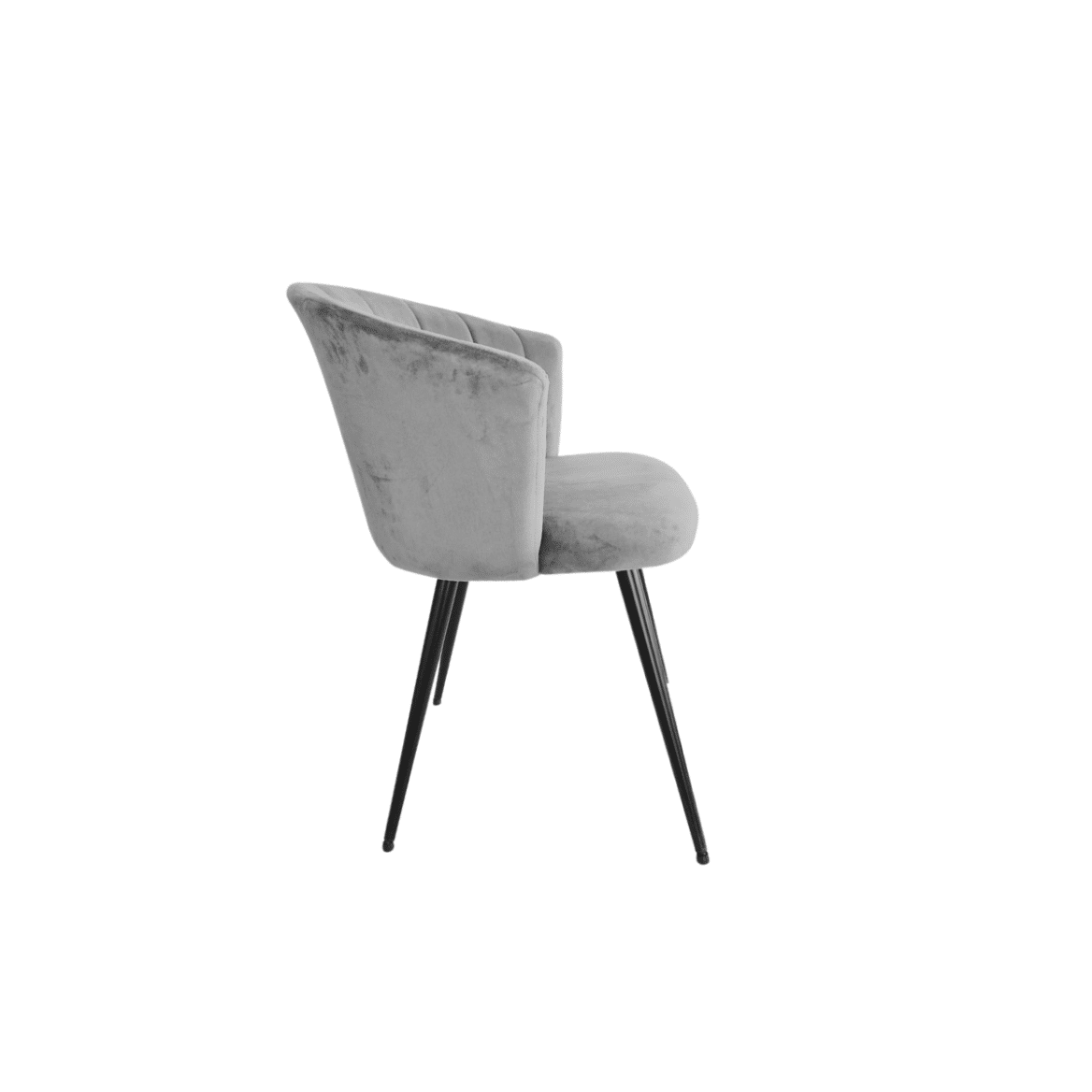 Scaun tip fotoliu Shell reprezintă combinația perfectă între design modern și confort desăvârșit. Cu o structură metalică robustă și o tapițerie elegantă din catifea gri închis, acest scaun tapițat adaugă un plus de rafinament oricărui spațiu. Ideal pentru living, birou sau zone de relaxare, fotoliul Shell este alegerea potrivită pentru cei care apreciază calitatea și stilul contemporan.
