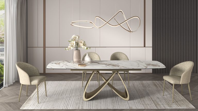 Scaunul INFINITY este completarea perfectă pentru masa ceramică INFINITY, formand astfel un set elegant și primitor pentru inima casei tale!