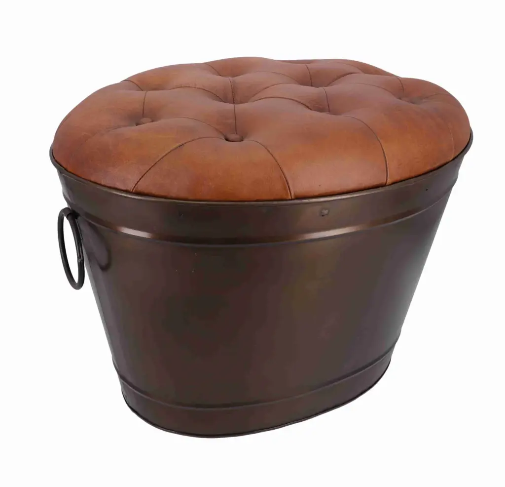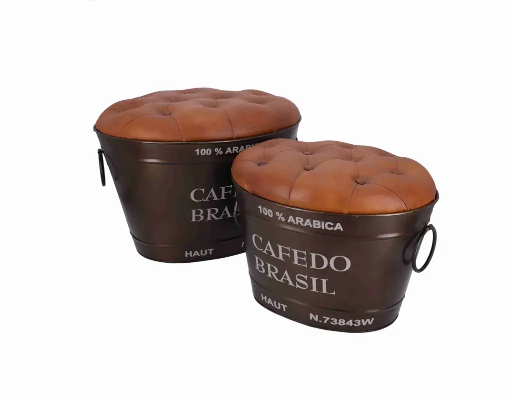 Set 2 taburete vintage tip butoi, depozitare ascunsa, design industrial – Cafedo Brasil