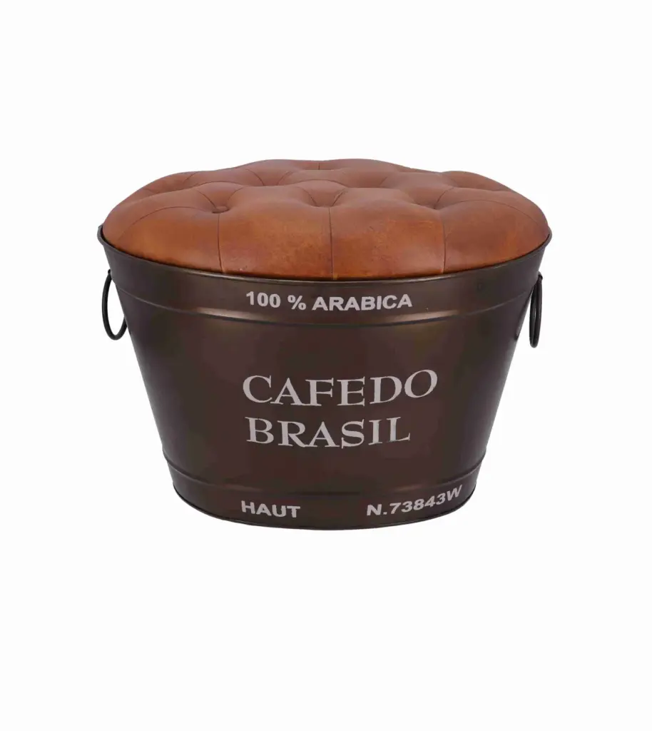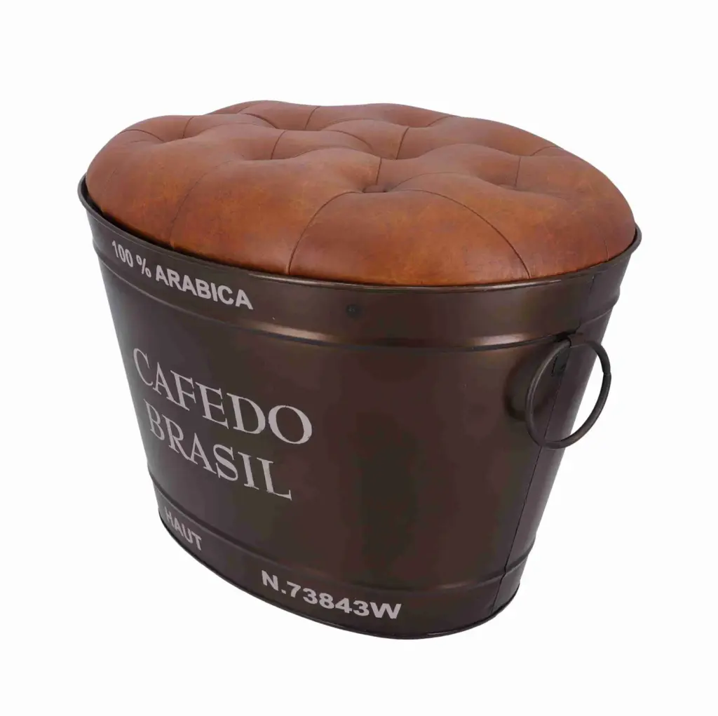 Setul de 2 taburete vintage tip butoi cu design industrial este soluția ideală pentru a aduce un plus de stil și funcționalitate în orice încăpere. Cu un aspect autentic, inspirat din mobilierul retro, aceste taburete din categoria canapele și fotolii se remarcă prin forma lor metalică și inscripțiile tematice Cafedo Brasil, perfecte pentru spații cu atmosferă rustică sau industrială. Sezutul capitonat cu imitație de piele maro asigură confortul necesar, iar spațiul de depozitare ascuns le face extrem de practice.