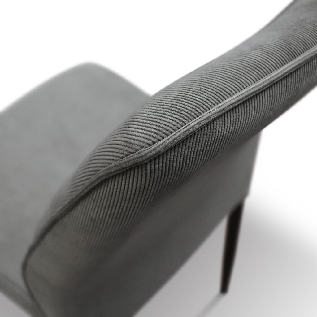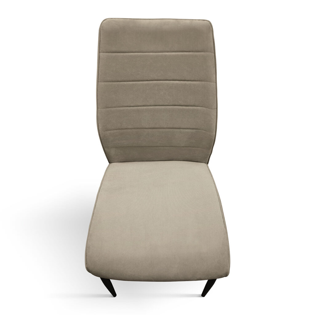 Acest model a fost conceput pentru cei care doresc să combine o estetică modernă și rafinată cu o șezut extrem de confortabil, perfectă pentru momente cu prietenii în jurul mesei. Designul scaunului este caracterizat de un spătar înalt, ușor curbat, conceput pentru a oferi un suport excelent. Atât șezutul, cât și spătarul sunt căptușite generos pentru a asigura un confort maxim chiar și pentru perioade lungi de timp.