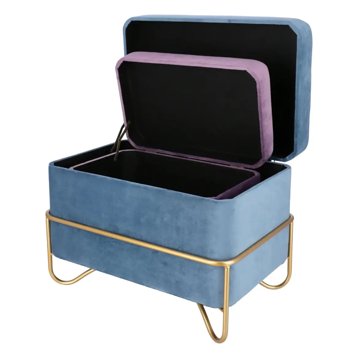 Setul elegant Luna de taburete cu spațiu de depozitare este soluția ideală pentru un interior modern și rafinat. Cu o tapițerie din catifea fină și o bază metalică aurie rezistentă, aceste taburete adaugă un plus de stil și funcționalitate oricărui spațiu. Designul compact și sofisticat face din acest set de 2 piese un element indispensabil în categoria de taburete pentru living sau dormitor.