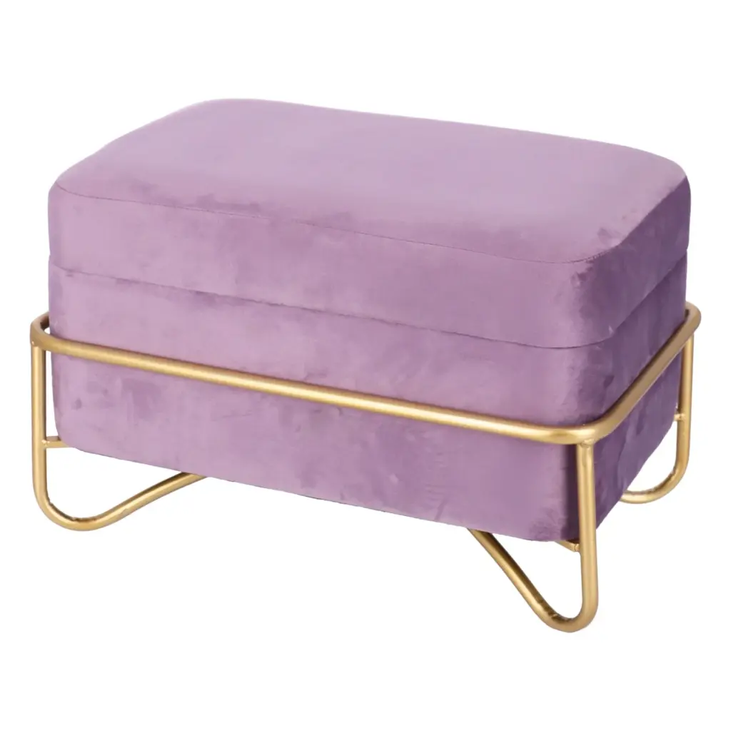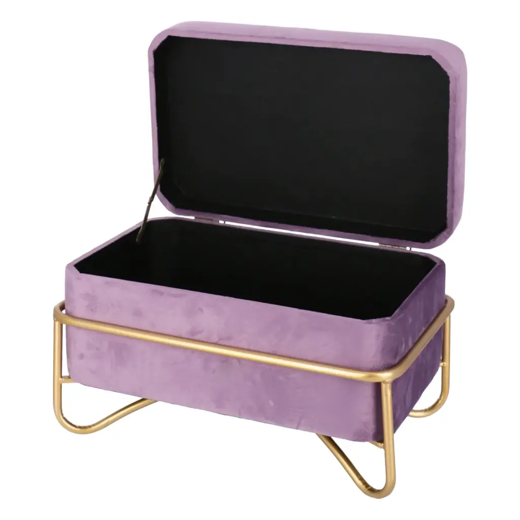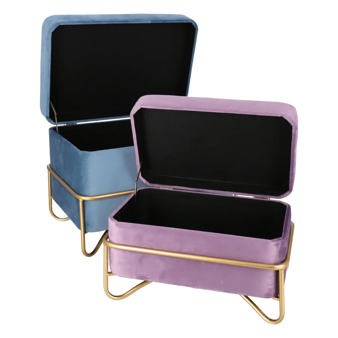 Set elegant Luna de taburete cu spatiu de depozitare, catifea si baza metalica aurie 2 piese