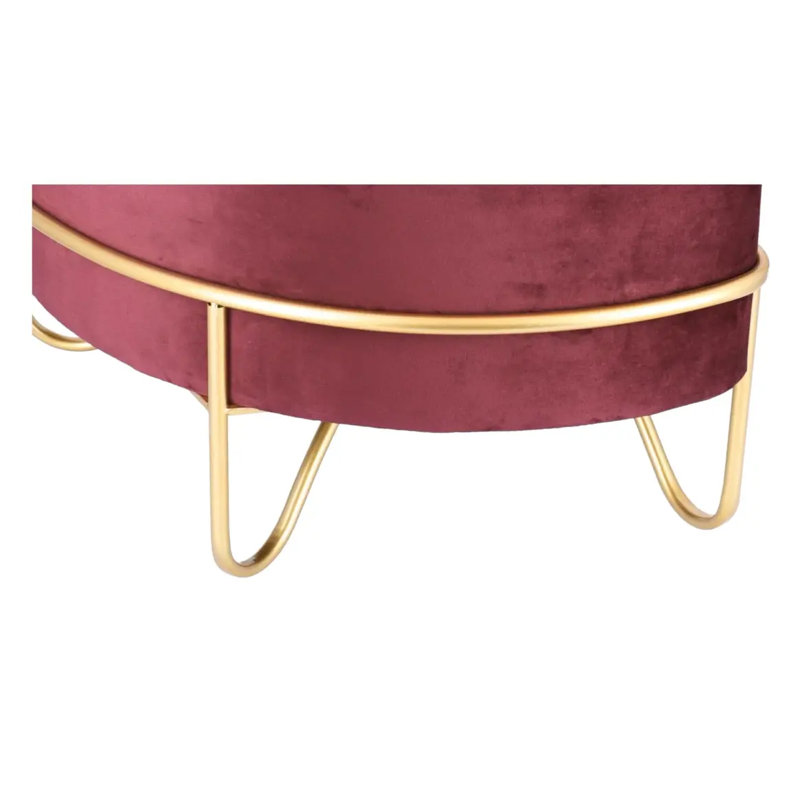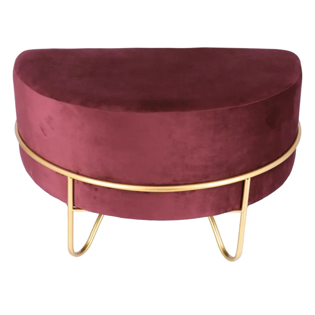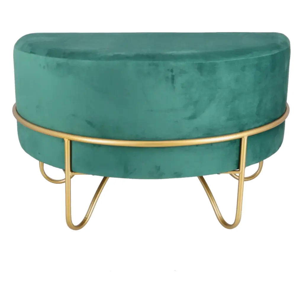 Acest taburet combină designul sofisticat cu funcționalitatea, oferind un suport comod și un aspect rafinat. Baza metalică aurie asigură stabilitate și durabilitate, în timp ce catifeaua moale aduce un plus de confort și stil. Ideal pentru momentele de relaxare sau ca element decorativ, acest taburet este o investiție practică și estetică pentru orice încăpere.
