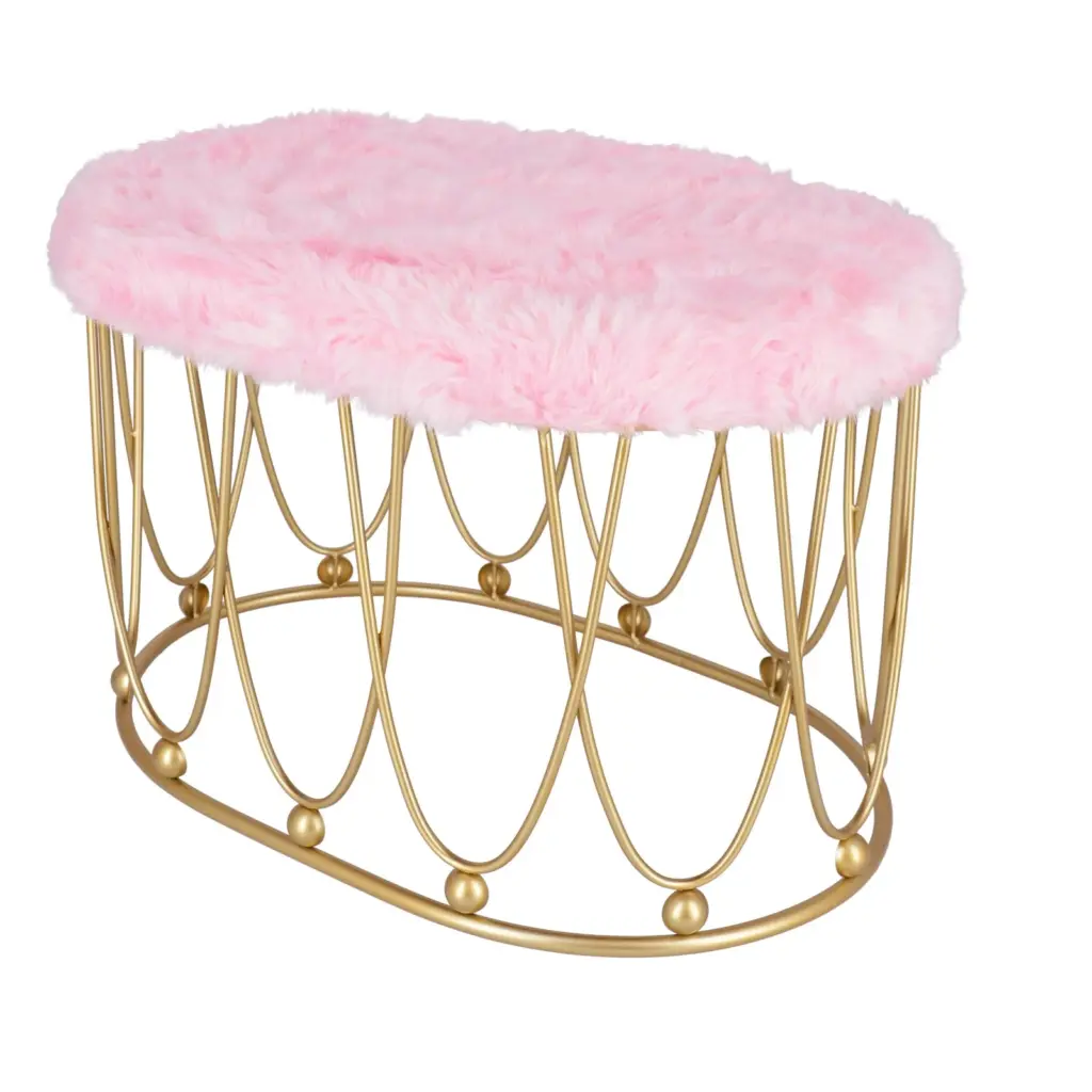 Taburet Pinky oval cu bază metalică aurie este alegerea perfectă pentru cei care caută un taburet elegant și confortabil, ideal pentru orice spațiu modern. Designul său oval, combinat cu baza metalică aurie și șezutul tapitat cu blăniță sintetică roz, aduce un plus de stil și rafinament în orice încăpere. Acest taburet versatil completează armonios decorul din dormitor, living sau dressing, oferind atât funcționalitate, cât și un aspect luxos și sofisticat.